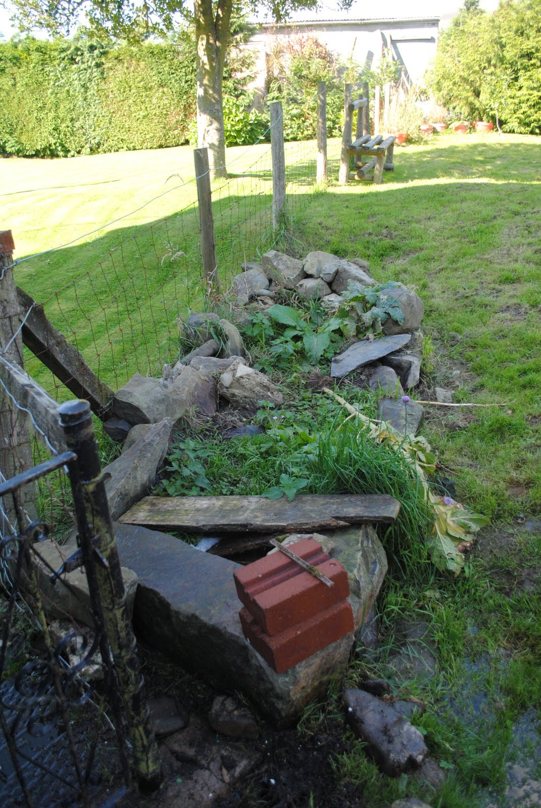 I looked at the 'rockery' with its collection of plants, stinging nettles and buttercups.